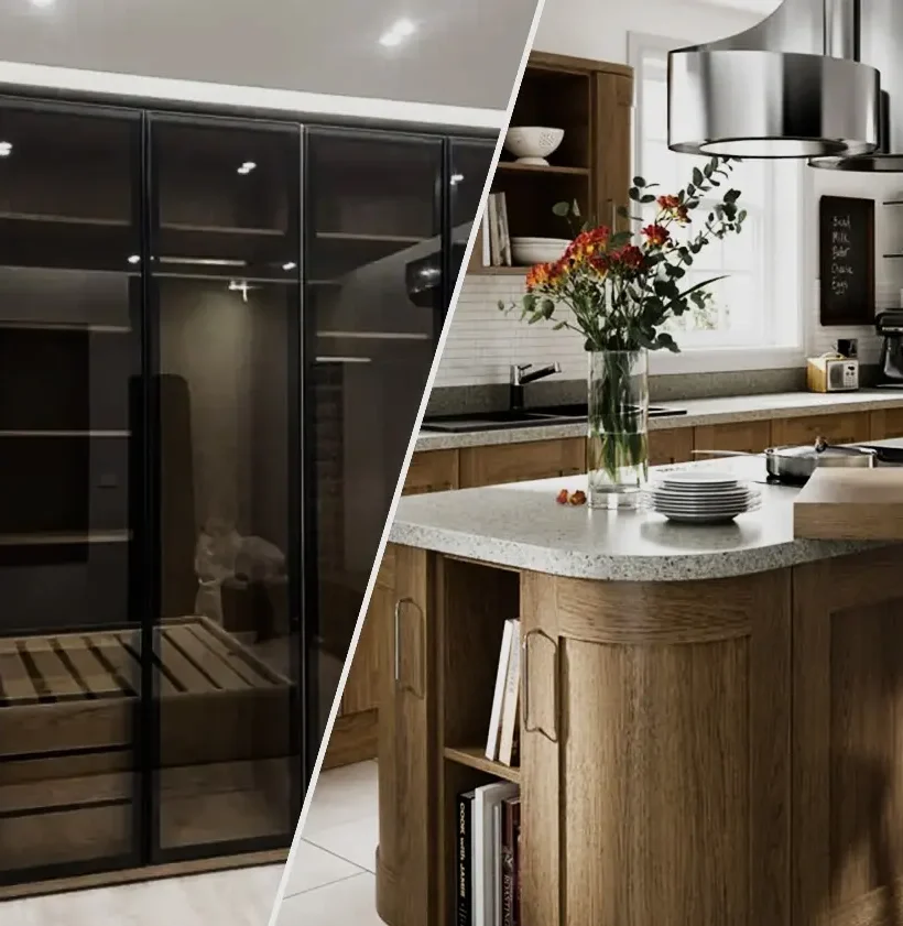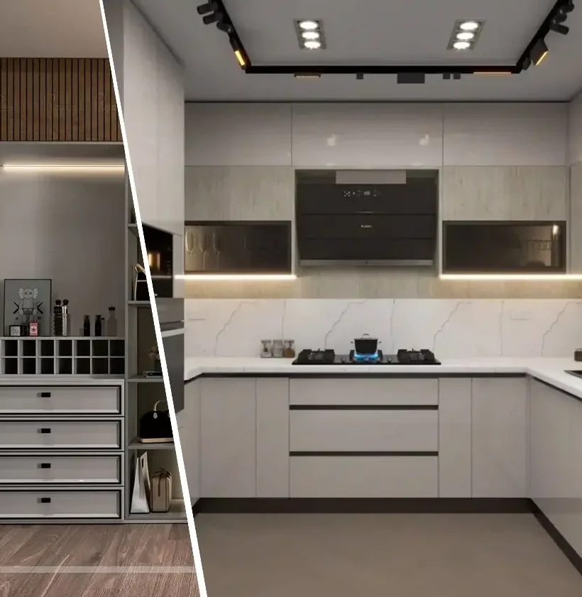 خدمة تصميم مبتكر باستخدام تقنيات 3D لعرض شكل المطبخ أو الدريسينج روم قبل التنفيذ، مع ضمان اختيار الألوان والمساحات والتفاصيل العملية.